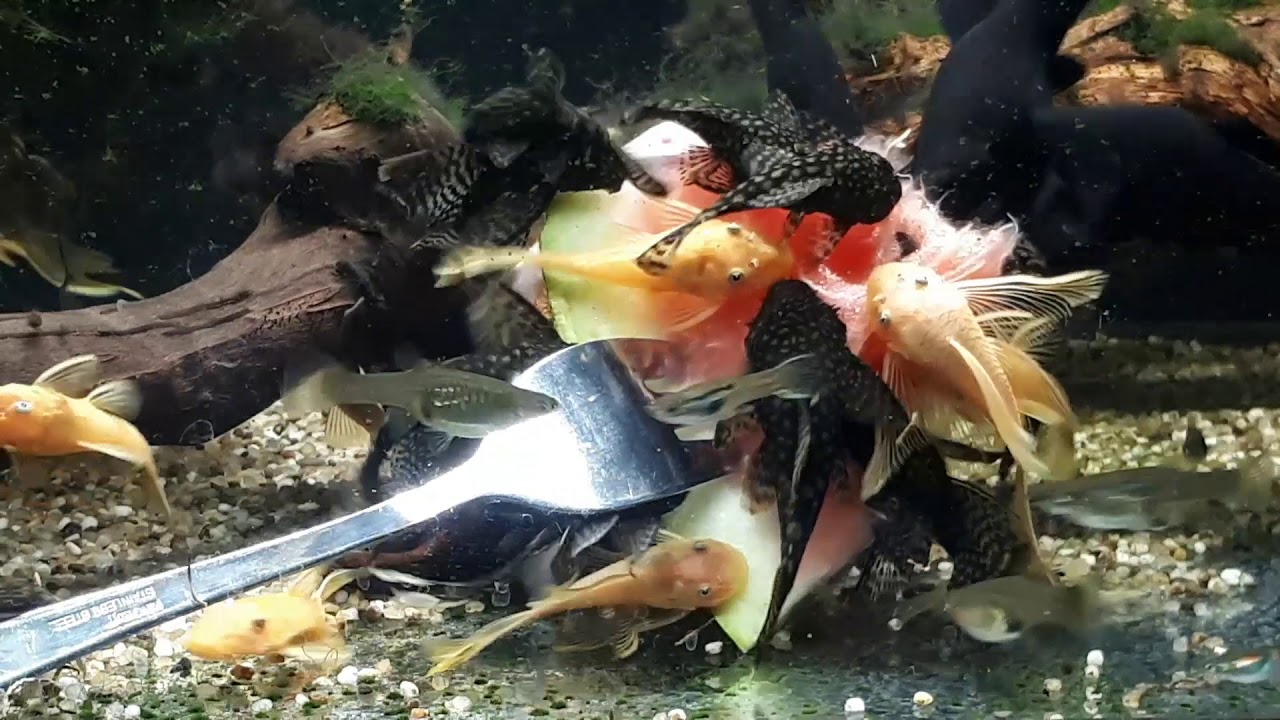 Karmiłem już zbrojniki tabletkami, ogórkiem, arbuzem, teraz przyszedł czas na cukinię. Zobaczcie czy im smakuje.