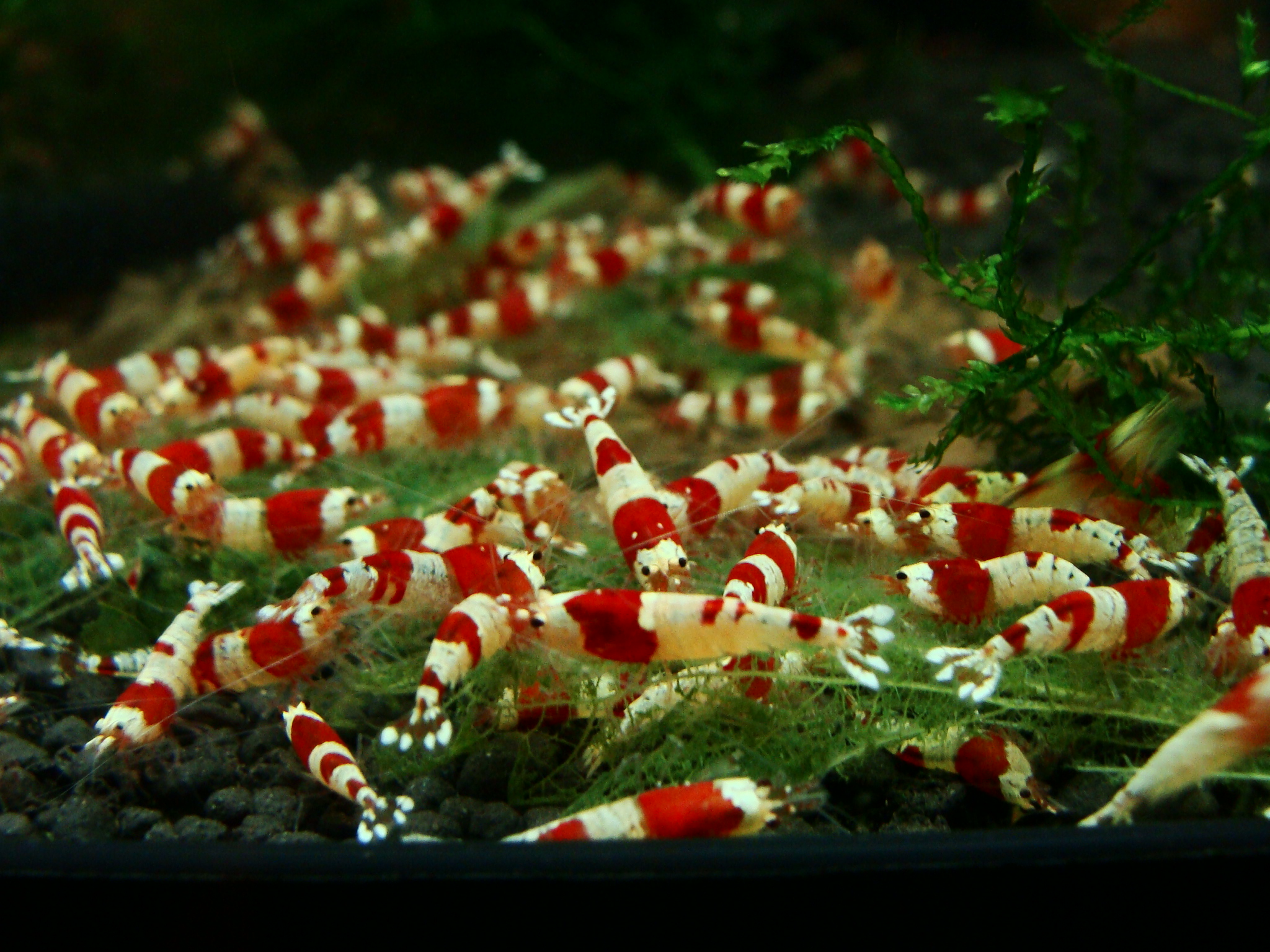 Karmienie krewetek Caridina cf. cantonensis “Red Bee” i Caridina cf. cantonensis “Black Bee”