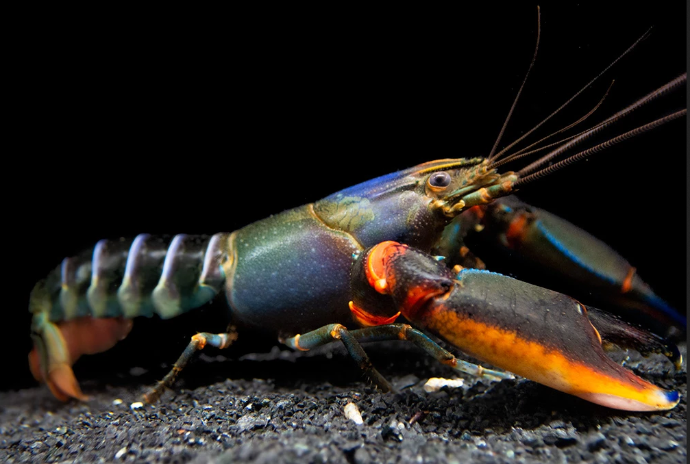 Rak Cherax sp. zebra prezentowany na wystawie akwarystycznej.