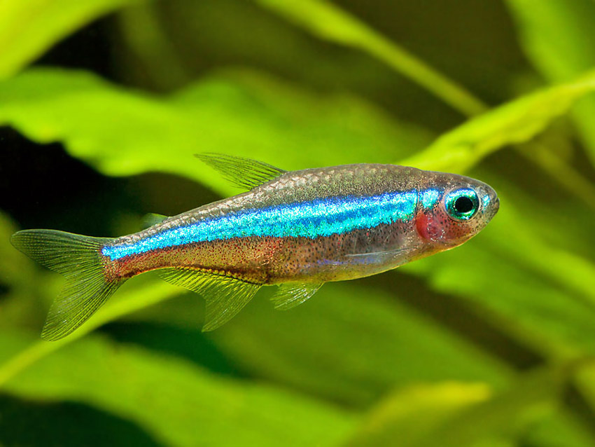 Neony czarne to piękne ryby. Najlepiej prezentują się na tle zieleni.