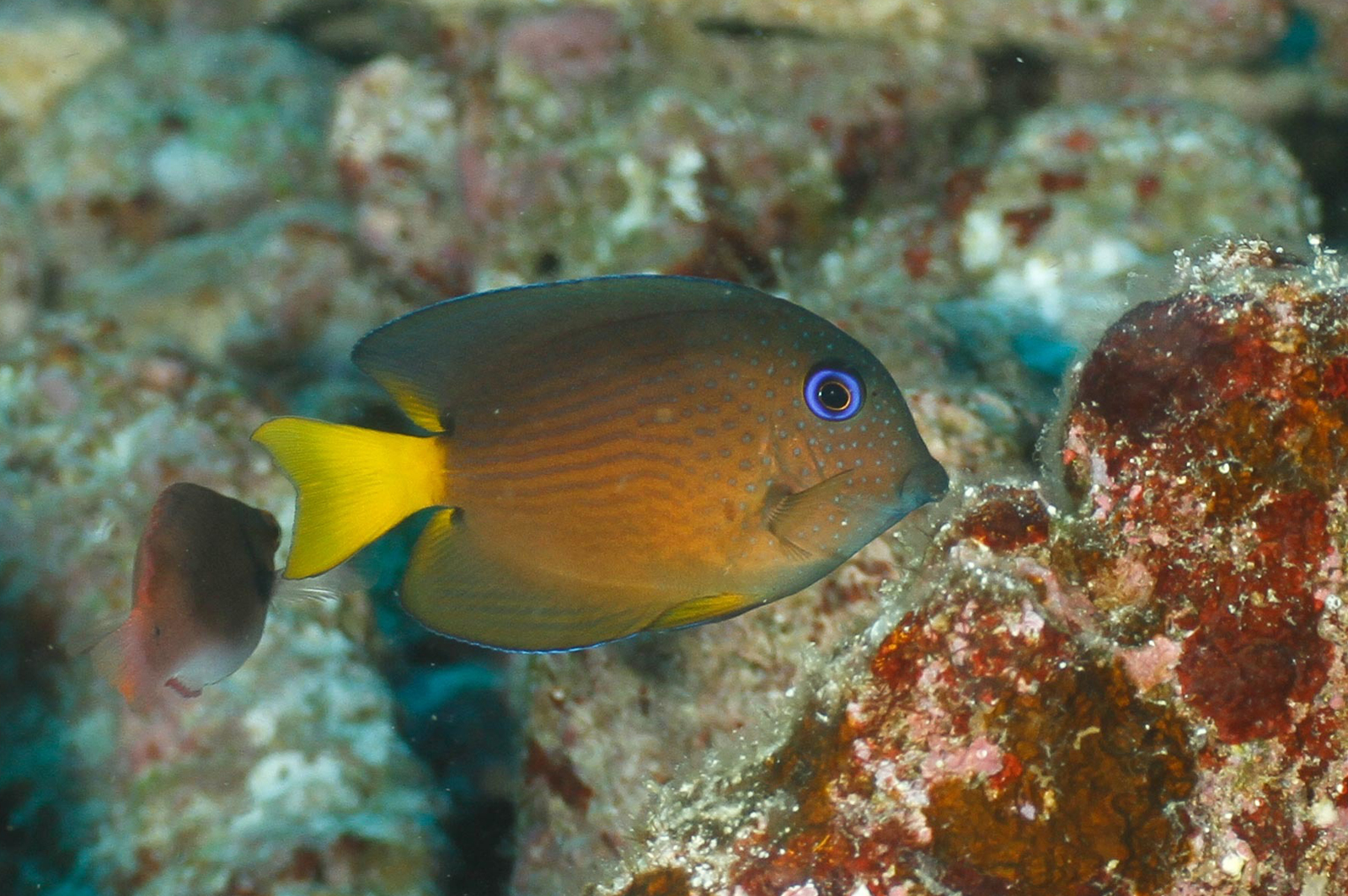 Pochodzenie: Indopacyfik Wielkość: do 22 cm.Temperament: spokojna.Minimalna wielkość akwarium: 500 litrów.Pokarm: algi nori, artemia, glony, kryl, liście mleczu (mniszka lekarskiego), mrożony pokarm , mysis, sałata, suchy pokarm.