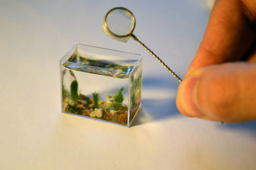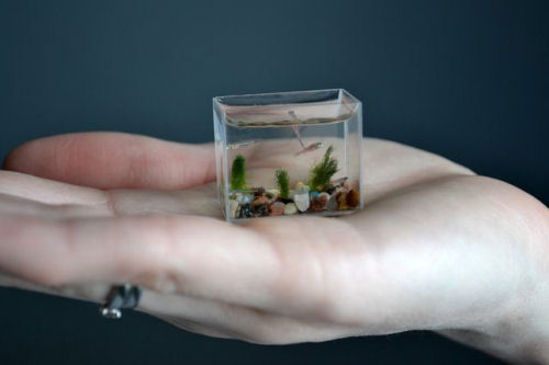 Rosjanin Antoly Konenko jest człowiekiem tworzącym osobliwe miniatury. Stworzył on też najmniejsze na Świecie akwarium zamieszkałe przez 4mm rybki. Zbiornik ma wielkość 30x24x14mm i 10ml objętości.