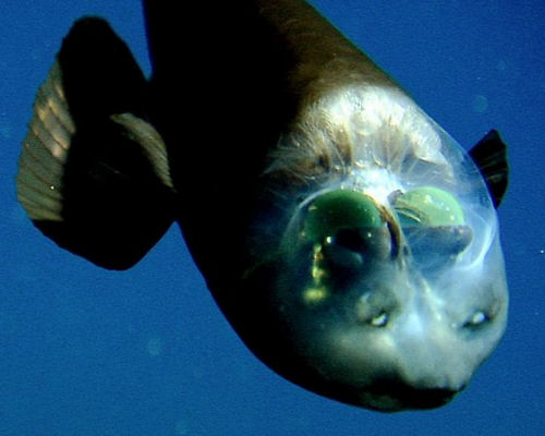 Gatunek ten należy do jednych z najdziwniejszych ryb. Został on opisany 1939 roku gdzie zwrócono uwagę na niezwykła budowę oczu. Pozwalają one na doskonałe widzenie na dużych głębokościach. Ryba żyje w głębinach na głębokości 600-800 merów. Światło słoneczne na tej głębokości zanika. Jak w takim razie może ona doskonale widzieć w głębi? Otóż jej oczy znajdują się w przezroczystej głowie i są zanurzone w płynie, który umożliwia ich przemieszczanie. Pozwala to na precyzyjną nawigację podczas żerowania.
