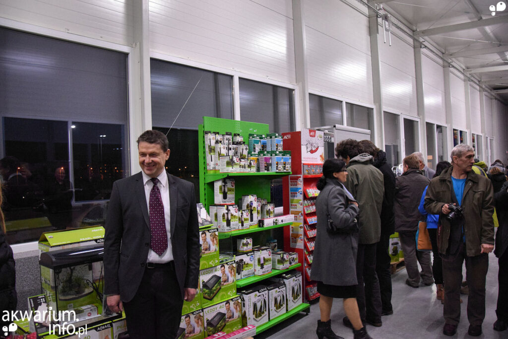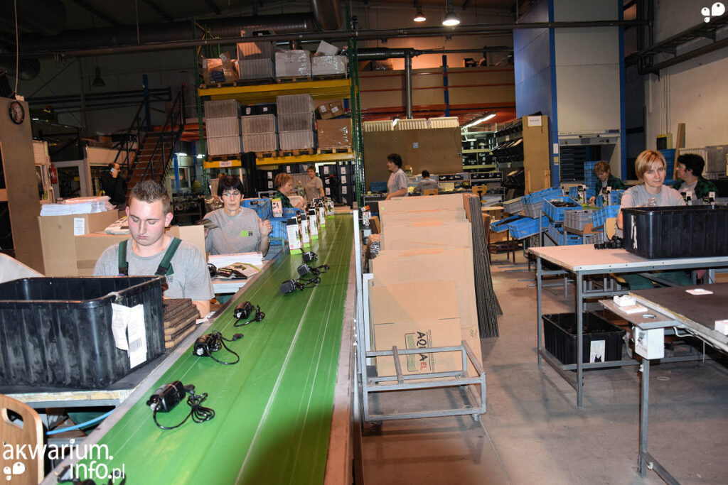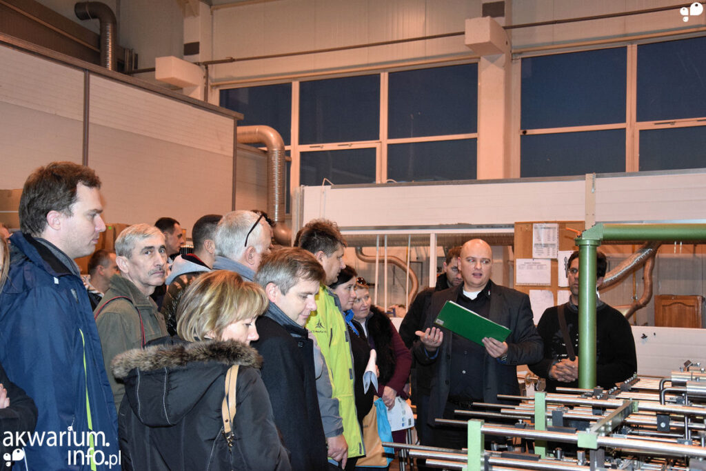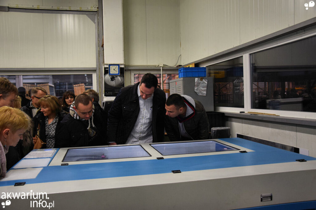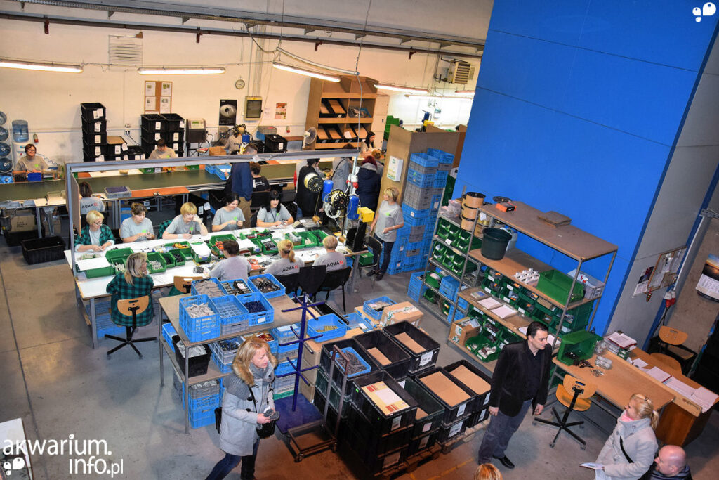 Firma Aquael zaprosiła redakcję portalu do swojej fabryki w Suwałkach.Zaproszenie było przy okazji celebracji obchodów 30-lecia firmy. Na jubileusz przyjechało ponad 200 przedstawicieli różnych hurtowni, sklepów oraz mediów.Tuż po przekroczeniu progu firmy mogliśmy zobaczyć sporej wielkości akwarium.Jedna z wielu linii produkcyjnych w fabryce. Na tej aktualnie składane są filtry wewnętrzne.W fabryce Aquaela w Suwałkach pracuje ponad 350 osób.Dział kontroli jakości w fabryce. Tu też oczywiście można było spotkać akwarium. Tym razem morskie.Przewodnik opowiada o technikach i procesie cięcia oraz szlifowania szkła akwariowego.Setki zestawów ShrimpSet przygotowywanych do spakowania i wysłania do sklepów. Ilość produkowanych zestawów świadczy o ich niezwykłej popularności, a sama linia służąca do komplementacji zestawów robiła piorunujące wrażenie.W zakładzie w Suwałkach produkowane są również pokrywy plastikowe oraz podstawki pod akwaria. Do ich produkcji stosuje się najnowsze technologie wtryskowe oraz termoformowalne. Aquael pod tym względem jest niezaprzeczalnym liderem w polskiej branży akwarystycznej.Magazyn, w którym schną akwaria. Nie sposób było objąć całości, ponieważ magazyn zajmuje ogromną powierzchnię i wznosi się pod sam sufit.Dział obróbki szkła.Ogromna maszyna jest przystosowana do obróbki nawet bardzo dużych tafli szkła. Zrobiła ona na wszystkich odwiedzających piorunujące wrażenie.W fabryce znajduje się również maszyna do laserowego wycinania małych elementów.Proces nadkładania silikonu podczas klejenia akwarium jest w fabryce w pełni zautomatyzowany. Tutaj robot nakłada odpowiednią ilość silikonu na wszystkie krawędzie akwarium. Proces ten znacznie przyśpiesza produkcję oraz niweluje błędy, które mogłyby powstać w czasie ręcznego nakładania kleju. Robot po nałożeniu odpowiedniej warstwy silikonu podaje poszczególne tafle szkła na linię produkcyjną, gdzie składane są one w akwarium.W Suwałkach znajduje się również magazyn firmy Aquael. Jest o oczywiście magazyn wysokiego składowania, gdzie znajdują się filtry, akwaria, grzałki i wszystkie inne produkty z fabryki. Wielkość magazynu robiła ogromne wrażenie na wszystkich odwiedzających.Pan Janusz Jankiewicz osobiście przywitał odwiedzających w fabryce. Była to też idealna okazja, aby osobiście zadać pytania samemu właścicielowi marki Aquael.Jesteśmy niezwykle wdzięczny firmie Aquael, za możliwość poznania tajników powstawania produktów “od kuchni”. Fabryka robi niesamowite wrażenie, a zastosowanie najnowszych rozwiązań technologicznych pokazuje, że firmie bardzo zależy na najwyższej jakości swoich towarów. Jakość i innowacyjność w tym wypadku to motto Aquaela i trudno się z nim nie zgodzić. Możemy być dumni, że tak nowoczesna firma od początku do końca jest polska!
