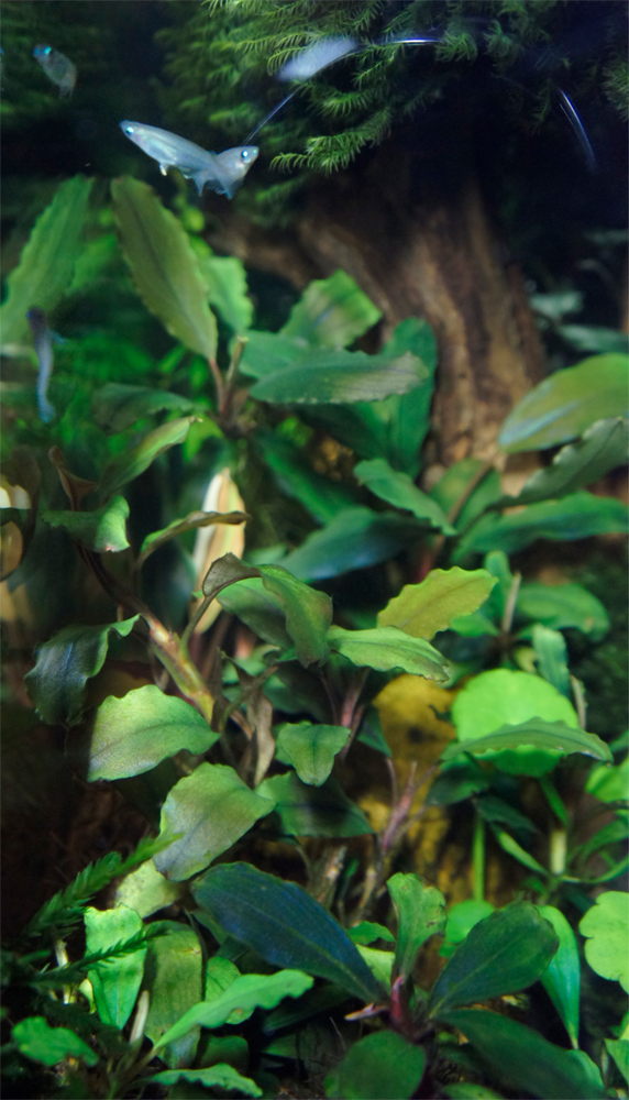 Rośliny: Eleocharis parvula, Аnubias barteri var. Nana petite, Hemianthus callitrichoides, Hemianthus micranthemoides, Bolbitis heudelotii, Fissidens fontanus