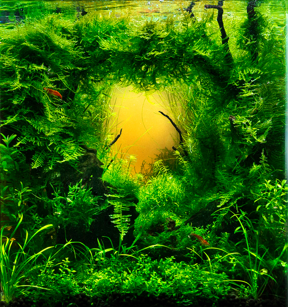 Rośliny: Fissidens fontanus, Moss sp. 610, Marimo, Lilaeopsis brasiliensis, Ranunculus papulentus, Hydrocotyle verticillata, Fontinalis antipyretica, Bucephalandra sp. Dark Vetvet pugmeia, Bucephalandra sp. Manimbow, Bucephalandra sp. Sexy Pink, sp. Brownie Purple, sp. Narcissus – 2, sp. from Mukok, Kalbar, sp. Shine Blue, sp. Velvet Leaf – 4, sp. Theia – 2, sp. Theia – 3, sp. Theia – 6., Micranthemum sp. Monte Carlo 3, Borneo moss