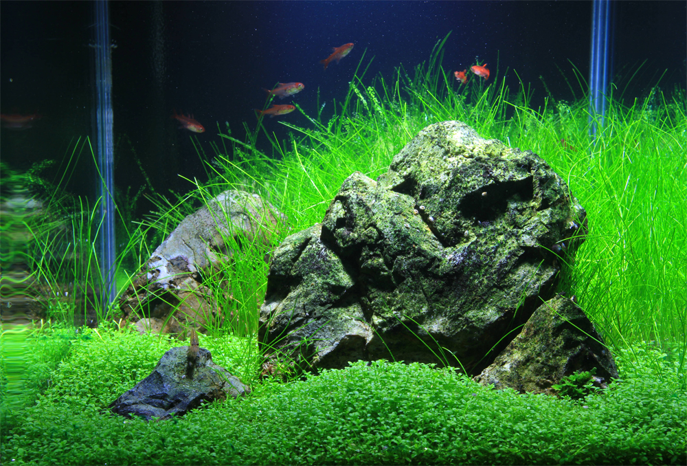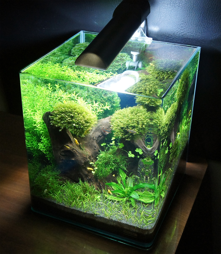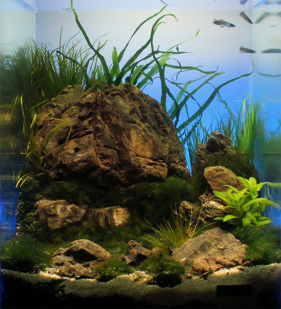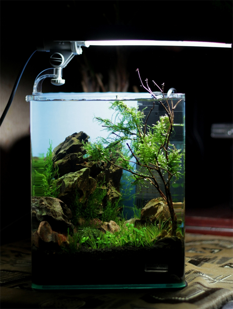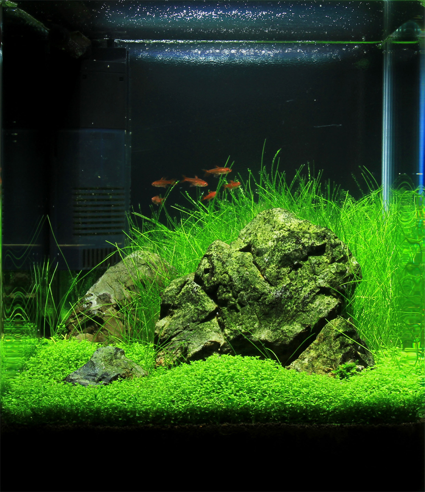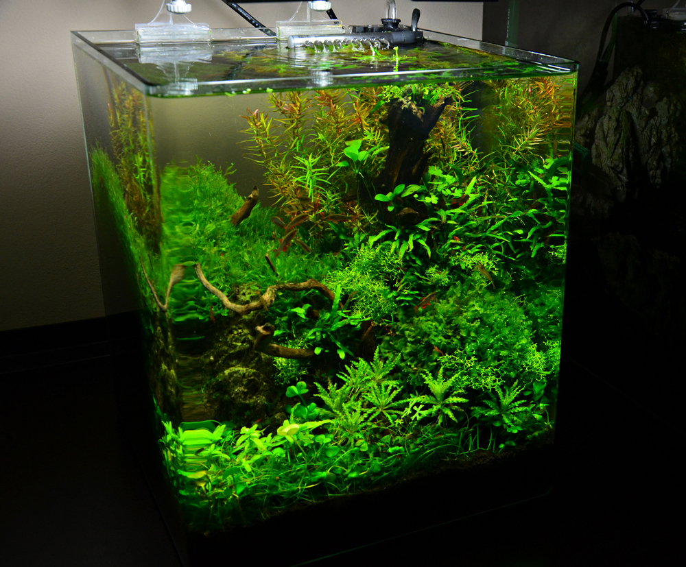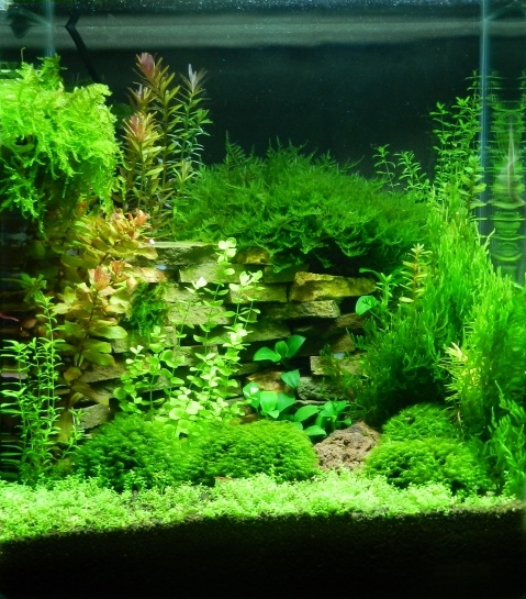 Rośliny: Flame moss, Christmas moss, Fissidens fontanus, Riccardia chamedryfolia, Weeping Moss, Anubias nana, Rotala indica, Rotala macrandra, Hemianthus callitrichoides cuba, Micranthemum umbrosum, Hemianthus micranthemoides