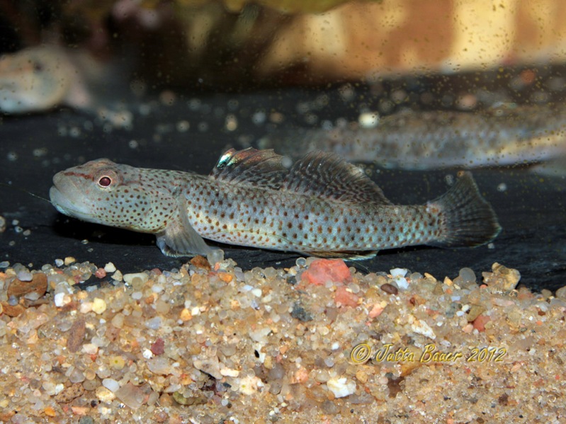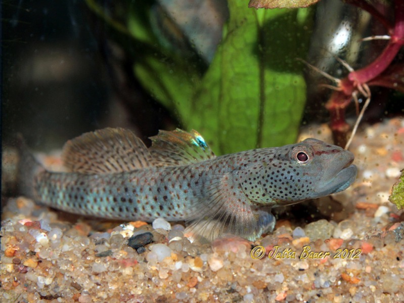Zaloty są zwykle inicjowane przez samicę. Niedoświadczone pary mogą zjadać jaja, źle je przyczepiać do sklepienia jaskini lub tylko częściowo je zapładniać, ale po kilku próbach zwykle para nabiera doświadczenia i kolejne tarła odbywają się bez zastrzeżeń. Jaja są duże (około 4 mm długości). Niektóre samce mają również tendencję do nieprzerwanego zjadania jaj w ciągu 24-48 godzin po tarle, w którym to przypadku należy je usunąć. Jeśli samiec nie zje jaj, można go pozostawić na miejscu do czasu wyklucia. Okres inkubacji wynosi zwykle 13-21 dni w zależności od temperatury wody. Im temperatura wyższa, tym okres inkubacji jest krótszy.