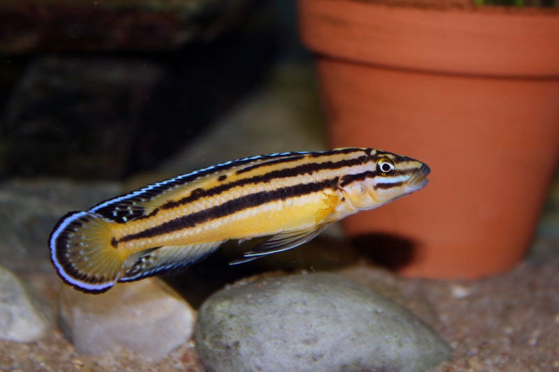 Julidochromis regani wymaga zbiornika minimum 80 cm. Podłoże piaszczyste lub z drobnego żwiru. Dekoracje z kamieni, grot skalnych i muszli ślimaków. Rybom należy zapewnić odpowiednią ilość kryjówek. Po bokach akwarium można posadzić mało wymagające rośliny. Ryba występuje w różnych odmianach np. “Affinis” , “Kipili”