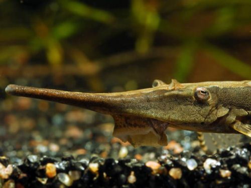 Samiec na bokach pyska posiada szczeliny. Dymorfizm jest bardzo wyraźny u dorosłych ryb. Dorosłe samice natomiast są szersze w partii brzusznej. Szczególnie uwidacznia się to przed okresem tarła. Pysk samca jest szerszy, u dorosłych pojawiają się na nim małe włoski zwane odontodami. Samica ma cieńszy pysk, który zawsze pozostaje gładki.