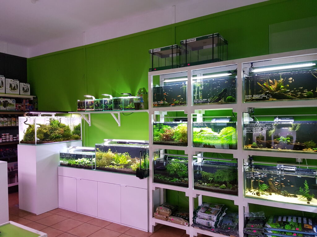 Studio już na wstepie prezentuje różne akwaria. Od małych kostek do dużych zbiorników z pięknymi aranżacjami. Ilość zbiorników na pewno nie zawiedzie żadnego pasjonata akwarystyki roślinnej, bo każdy znajdzie tu coś dla siebie.