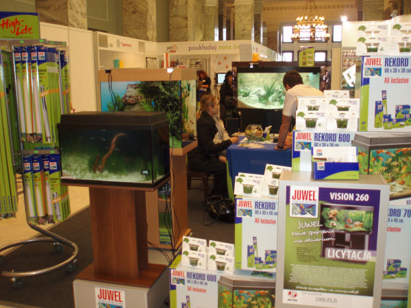 Na samym środku swoje stoisko prezentowała firma Juwel. Główną aranżacją stoiska było spore akwarium, które całkiem ładnie się prezentowało. Przedstawiciel firmy Juwel pieczołowicie dbał o odwiedzających stoisko i udzielał wszelkich odpowiedzi na zadane pytania.